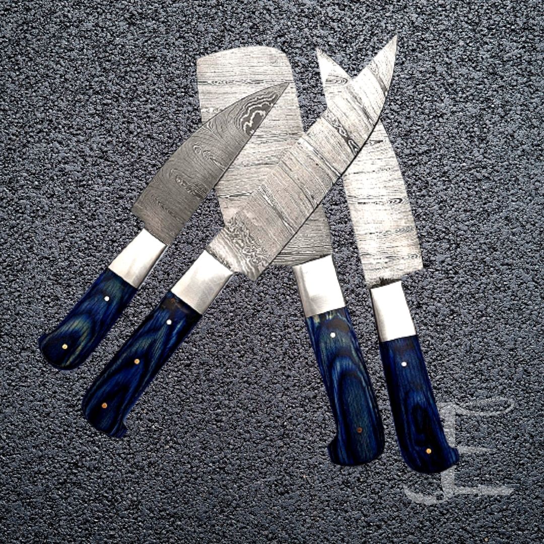 JAKEN Brand New Custom Handmade Twist Pattern Forged Damascus 4 Pcs Full-Tang Pakkawood Handle Hunting Camping Outdoor Kitchen Knife Set